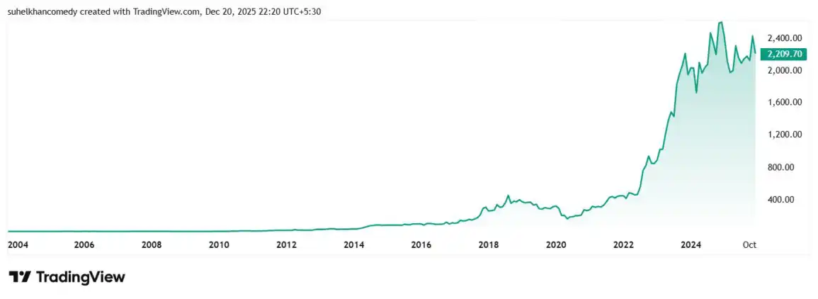 The share price of Safari Industries (India) Ltd was around Rs 275 in December 2020 and as of closing on 19th December 2025 it was Rs 2,208, which is a jump of over 700%.