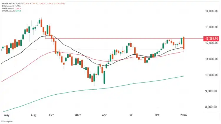 Spotlight: The Oil & Gas index tumbled almost 6% this week, amid a confluence of headwinds. President Trump's endorsement of the 2025 Sanctioning Russia Act, which proposes secondary tariffs of up to 500% on countries buying discounted Russian crude, has sparked fears. Additionally, the capture of Venezuela's Nicolás Maduro added supply uncertainty globally. Amidst all the developments, heavyweights such as Reliance Industries (-7.3%), Indian Oil (-5.5%), Hindustan Petroleum (-9.5%) and BPCL (-7.1%) pulled the index down further, as investors sought to reduce risk ahead of the Union Budget.