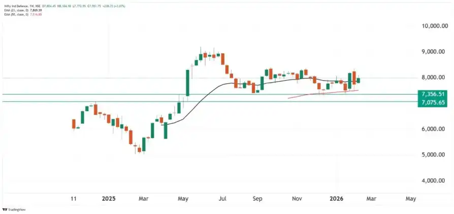 Spotlight: The Defence Index was in focus after the Defence Acquisition Council cleared proposals worth ₹3.6 lakh crore. The proposals include acquisition of 114 Rafale fighter jets, additional six P-8I aircraft, anti-tank mines along with S-400 missiles. Reflecting this optimism, several defence stocks outperformed the broader market over the week. Bharat Forge (+11.6%), BEML (+7.3%), Hindustan Aeronautics (+3.6%) led gains as key beneficiaries of large orders and strategic procurement momentum.